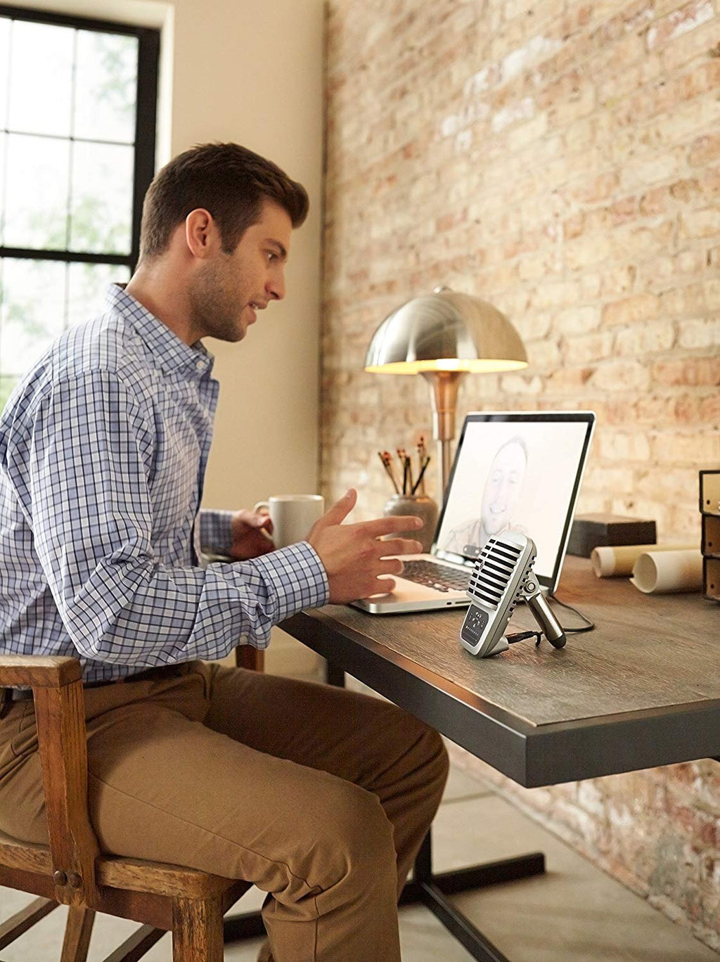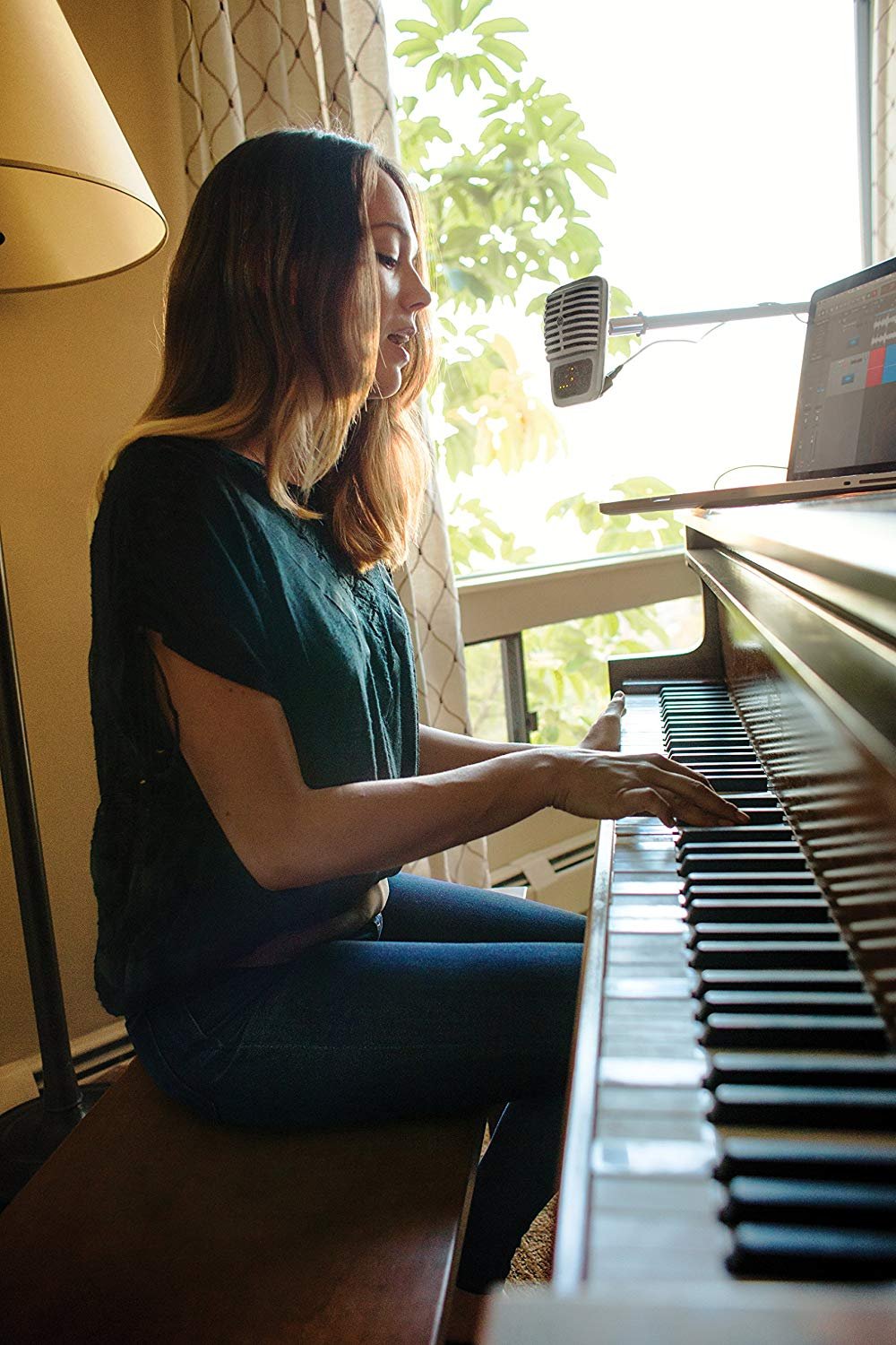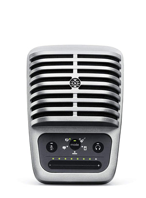 Specifically engineered for high-quality digital audio capture, the all-digital MOTIV MV51 large-diaphragm condenser microphone seamlessly connects to any Mac, PC, iPhone, iPod, iPad and Android devices for the ultimate in convenience of digital recording. Equipped with five onboard DSP preset modes to provide optimal recording results, the MV51 includes a unique onboard touch panel control for quick access to gain, mute and headphone volume adjustments. The 1 inch capsule element provides unmatched audio results, which are easily monitored in real-time via the built in 1/8" (3.5mm) headphone output. The striking vintage design and durable all-metal construction includes an integrated kickstand compatible with any standard mic stand, making the MV51 a complete recording solution when convenience is required without sacrifice.