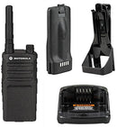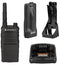 Four pack of Motorola RMM2050 radios with programming video primer made by All Charged Up on packing slip included with radios. Each of our radios comes complete with a single-unit charger, 15 hour lithium ion battery pack, swivel belt holster, 1-year warranty, free shipping, and guaranteed support from our team of radio experts. Radios work right out of the box with the default RMM2050 programming, but the programming video gives instructions for how to optionally customize your frequency and privacy code to get rid of any possible cross-talk and ensure private and secure communication. For questions, give us a call or shoot us an email.