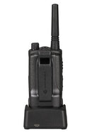 Six-pack of Motorola RMM2050 radios. Each of our radios comes complete with a single-unit charger, 15 hour lithium ion battery pack and swivel belt holster.