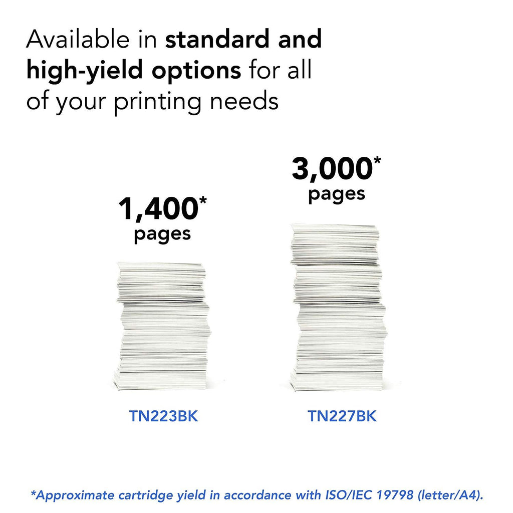 - DELIVERS SUPERIOR LASER PRINT QUALITY: Brother Genuine TN-227BK high yield black toner cartridge delivers consistent, crisp, professional laser quality output you can rely on for up to 3,000-pages.(1)