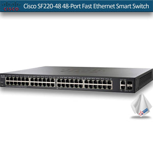 • INCLUDED ITEMS: 1 x Cisco SF220-48 48-Port Fast Ethernet Smart Switch | 1 x Microfiber Cloth