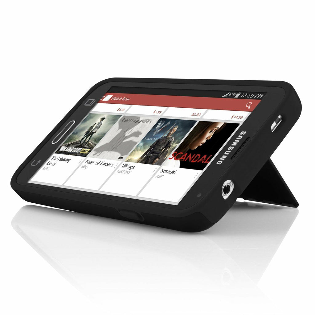Rigid Plextonium shell with impact resistant core and shock absorption Holds ID and credit cards Built-in Kickstand Rigid Plextonium shell co-molded with impact resistant Flex2O core for sleek protection Holds cash, credit cards, or ID in back compartment for added convenience Glossy finish for a sleek and polished look and feel
