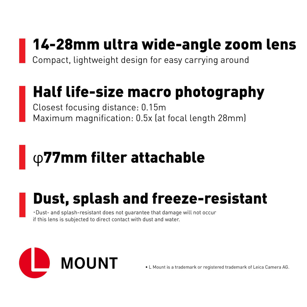 Panasonic LUMIX S Series Camera Lens, 14-28mm F4-5.6 Ultra Wide-Angle Zoom Lens with Macro Capability, S-R1428