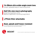 With an ultra wide-angle zoom, the LUMIX S Series 14-28mm / F4-5.6 ASPH. lens S-R1428 can achieve high optical performance and stunning mobility fit to LUMIX S5 series cameras for both photo and video. Excellent video recording performance to get the descriptive performance and beautiful bokeh. The LUMIX S 14-28mm F4-5.6 MACRO lens features a common overall length and position of control parts to provide practical advantages in use. The weight and the center of the gravity of these lenses is almost the same so that it is easy to exchange lenses quickly with minimum balance adjustment when the camera is on a gimbal.