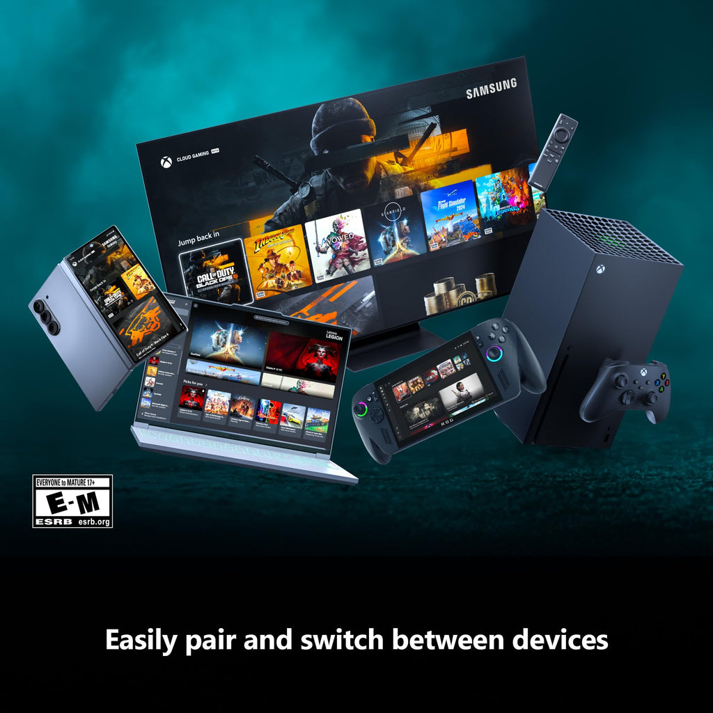 Hold nothing back with the Breaker special edition series. Ice Breaker keeps it forever fresh with a mix of iced and frosted blues. Stay elegantly on target with textured triggers. Hold on to the action with rubberized grips on the back cases. Quickly pair with, play on, and switch between devices including console, PC, and cloud.* "*Windows 10/11: Requires Bluetooth, compatible USB-C cable, or Xbox Wireless adapter. Each sold separately. Android, iOS, and Bluetooth: Select devices and versions. Some functionality not supported. Software download may be required via Windows PC or console. See xbox.com/controller-compatibility. Use with controller-compatible games. *See xbox.com/controller-compatibility. Use with controller-compatible games. Battery life varies significantly with headsets, additional accessories, usage, and other factors. Testing conducted by Microsoft using standard AA batteries in preproduction units. Button mapping available via Xbox Accessories app for Xbox Series X|S, Xbox One, and Windows 10/11; app for Windows 10/11 requires compatible USB-C cable (sold separately). *Requires Xbox Game Pass Ultimate (sold separately) and Xbox App, Xbox Cloud Gaming app and supported controller (sold separately) or Xbox.com/play access. Third party device shown. Game(s) shown coming soon, catalog varies by region and plan. See Xbox.com for details. *Xbox Cloud Gaming (Beta) requires Game Pass Ultimate subscription and supported device (both sold separately). Cloud playable games not included with Game Pass Ultimate are sold separately, and may be made available with Game Pass Ultimate in the future. Game catalog varies. Stream on supported devices and Smart TVs with the Xbox app. Select regions (xbox.com/regions) and devices at xbox.com/cloud-devices. See cloud gaming catalog (xbox.com/play)."